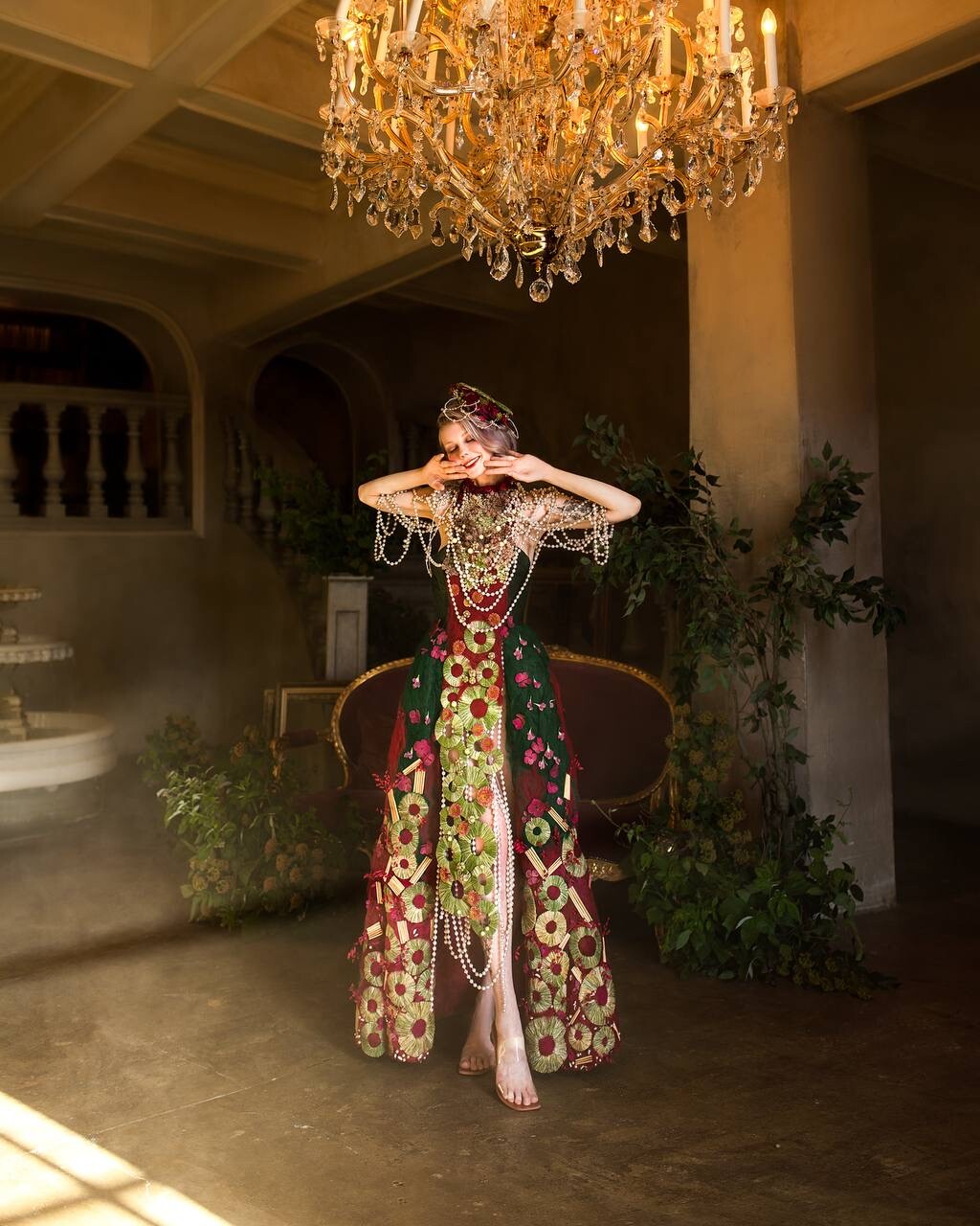 Two main competition photos (mandatory) — front view and back view, the entire work must be visible in the frame. The photos must be atmospheric and convey/reveal the idea of the participant. (Retouching of the background, additional objects in the photo, etc. is allowed, i.e. everything except the outfit and accessories)